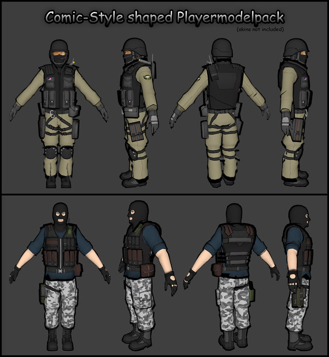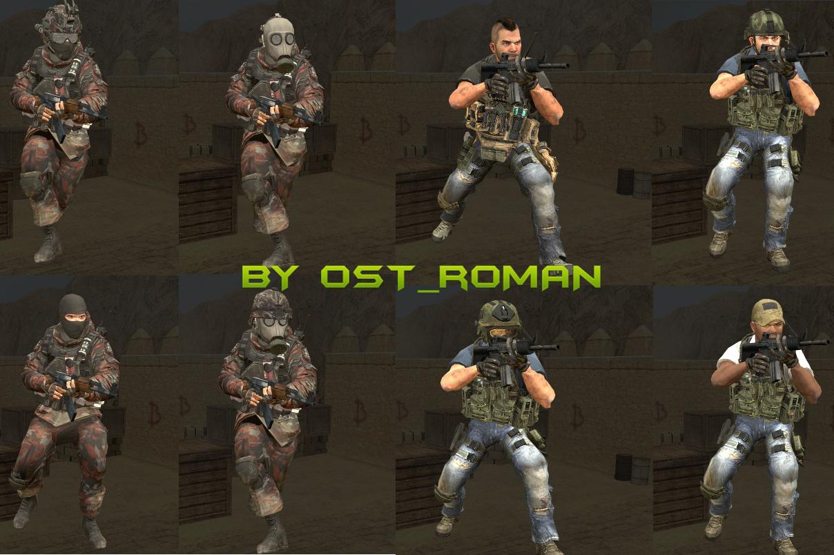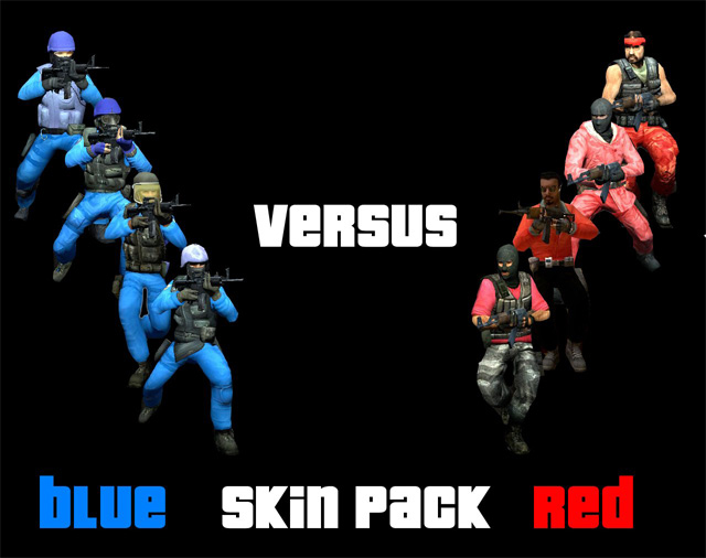 Отличный пак скинов для обеих команд. Террористы - красные, спецназовцы - синие